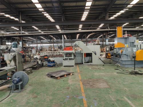 一、系統(tǒng)機(jī)組技術(shù)參數(shù) Ⅰ、機(jī)器顏色:主機(jī)為:公司標(biāo)色;電柜為:電腦色;防護(hù)罩:黃色 Ⅱ、擠出工藝:(二大料五小料----自動(dòng)稱重配料系統(tǒng)----500升高混機(jī))另外配置報(bào)價(jià)----單螺桿喂料機(jī)-----JDL-75D雙螺桿---—液壓雙板式自動(dòng)換網(wǎng)—-—JDL-180單螺桿擠出機(jī)——-液壓板式自動(dòng)換網(wǎng)-——-水冷模面熱切造粒輔機(jī)-——高壓水泵-----離心脫水機(jī)-------風(fēng)冷加長(zhǎng)振動(dòng)篩----一級(jí)旋風(fēng)分離器------成品料倉(cāng)----噸袋自動(dòng)稱重系統(tǒng)-------PLC觸摸屏控制 Ⅲ、加工物料:PE破碎料+40-50%碳酸鈣 產(chǎn) 能:600--900公斤/小時(shí) 注意事項(xiàng):取決于客戶的配方、工藝、生產(chǎn)條件